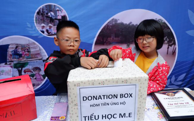 Một lần nữa nhà trường xin được cảm ơn quý phụ huynh và học sinh đã cùng nhà trường làm nên điều tốt đẹp và ý nghĩa, giúp các con yêu thương sẻ chia hạnh phúc trong cuộc sống. 100% số tiền bán hàng trong hội chợ hôm nay nhà trường sẽ chuyển ủng hộ các bạn học sinh tiểu học miền trung đang gặp khó khăn trong đợt bão lũ vừa qua.